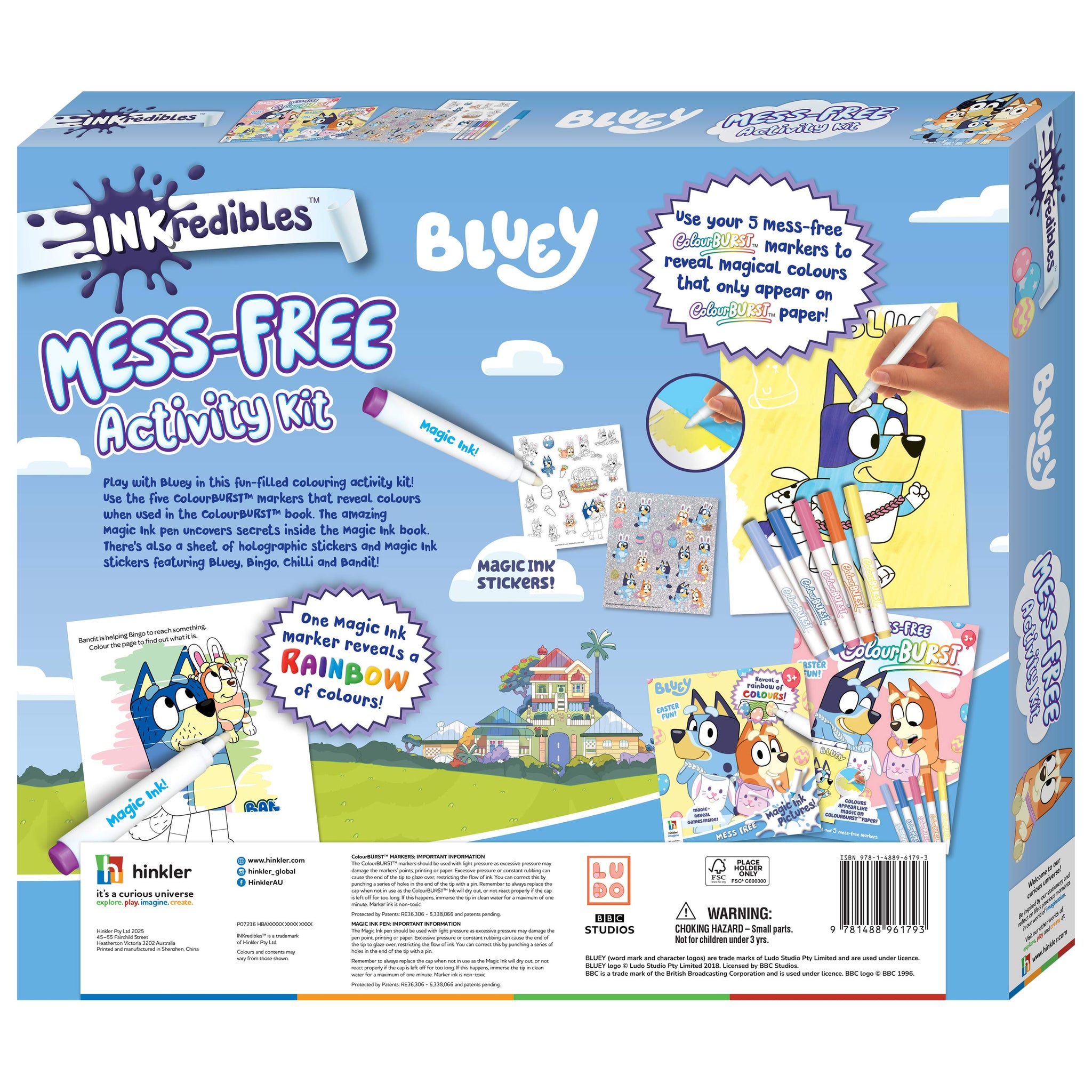 Kids will love having some Easter fun with Bluey, Bingo and the gang in this INKredibles Activity Kit Bluey Easter! Packed with mess-free colourful fun it includes a Magic Ink colouring book and a Magic Ink marker and a Colourburst colouring book with 6 Colourburst markers! Plus a sheet of holographic stickers and a sheet of Magic Ink stickers!