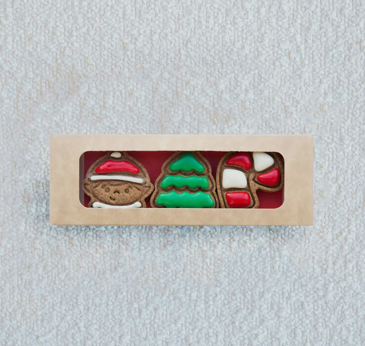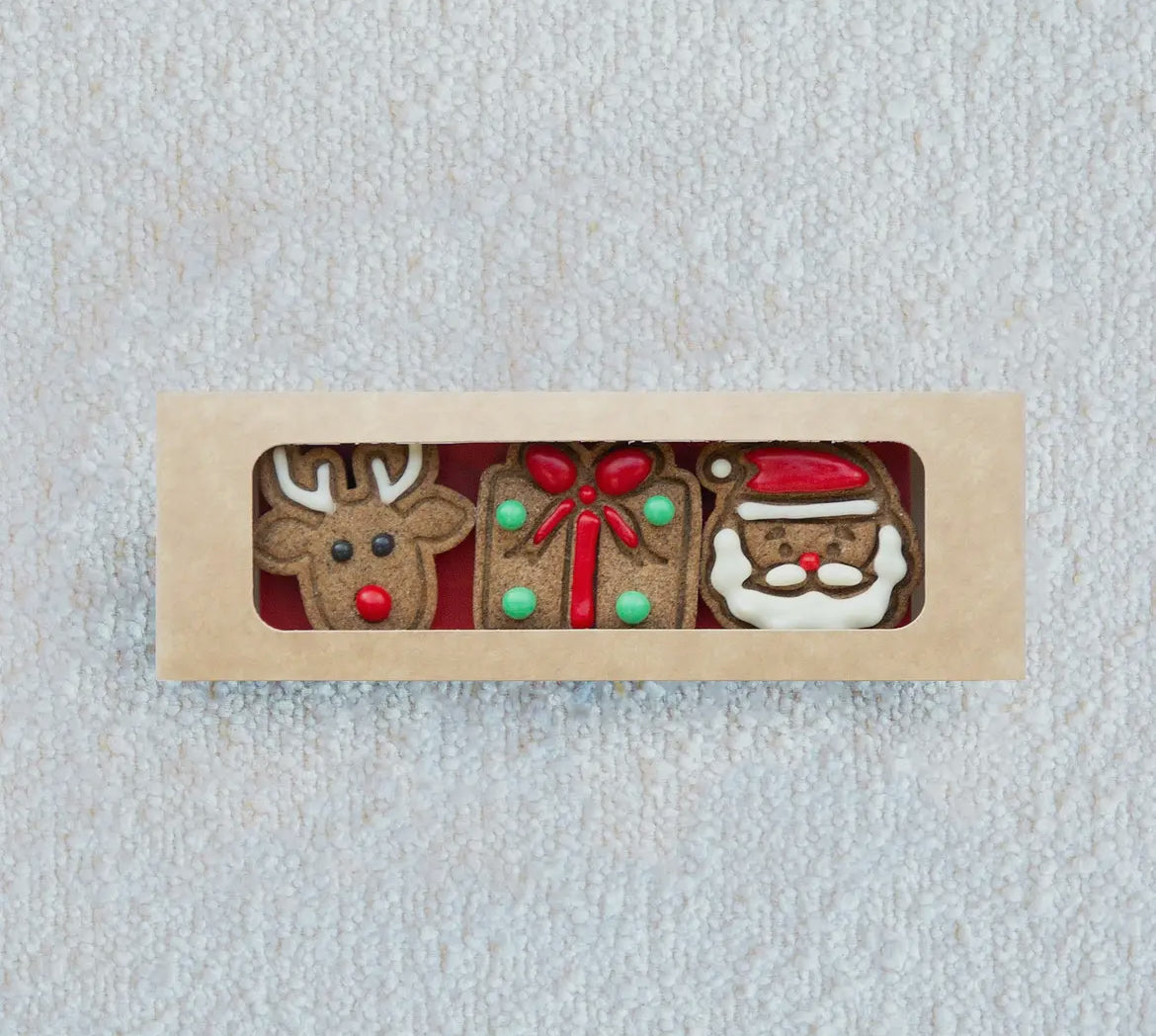 Each biscuit is handcrafted with dog-friendly icing and comes in holiday-inspired shapes: a festive Rudolph, wrapped gift and a cheerful Santa - perfect for spreading Woofmas joy!