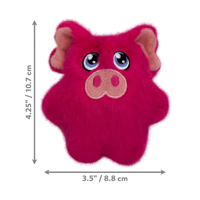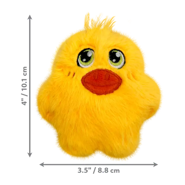 KONG Snuzzles Minis are perfect for little dogs who love big noises! This tiny plump toy is perfect for squeaking, carrying, and snuggling. The full-body squeaker creates a dense mouthfeel that entices chewing, gumming, and squishing. Their flat shape and velvety plush exterior make these mini characters easy to grab & perfect for indoor play.